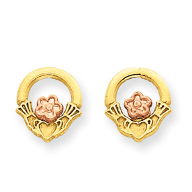 14K Two-tone Gold Polished & Diamond-Cut Satin Claddagh Post Earrings
