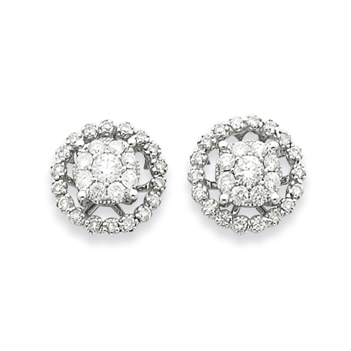 14K White Gold Large Flower & Jacket Diamond Post Earrings
