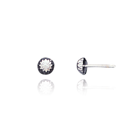 14K White Gold Polished & Diamond-Cut Half Ball Post Earrings