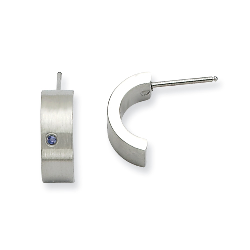 Stainless Steel Blue CZ Satin Half Hoop Post Earrings