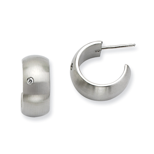 Stainless Steel CZ Satin J Post Hoop Earrings