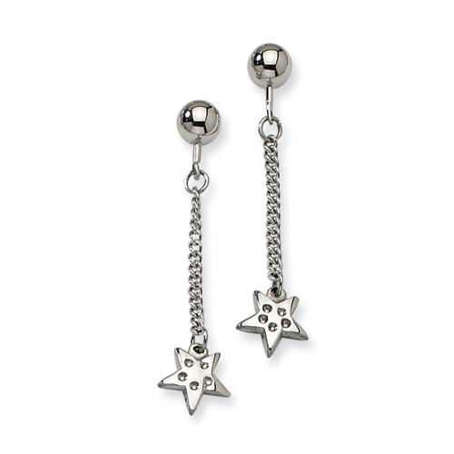 Stainless Steel Polished Star w/ CZs Post Dangle Earrings