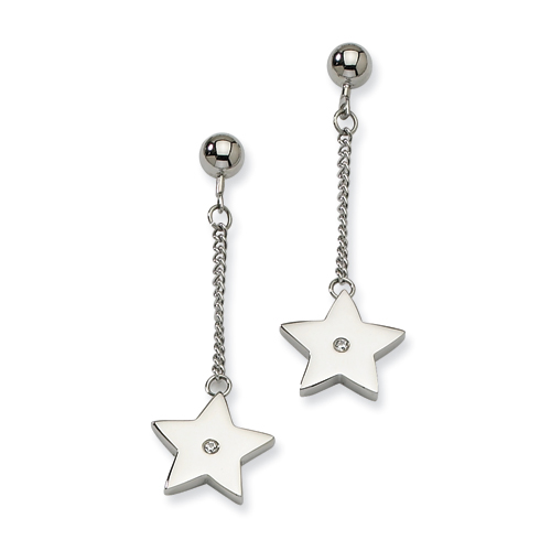 Stainless Steel Polished Stars w/ CZ Post Dangle Earrings