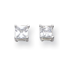 Sterling Silver 4mm CZ Princess Stud Earrings