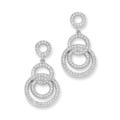 Sterling Silver & CZ Fancy Circle Dangle Post Earrings