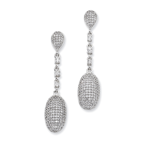 Picture of Sterling Silver & CZ Fancy Polished Dangle Post Earrings