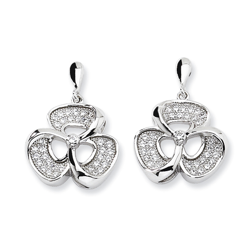 Sterling Silver CZ Diamond Cut Drop Earrings