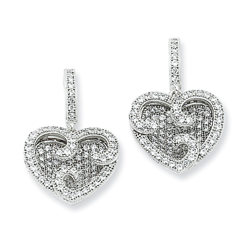 Sterling Silver & CZ Polished Heart Dangle Post Earrings