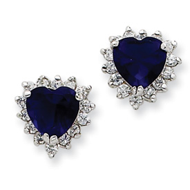 Sterling Silver Dark Blue and Clear Cubic Zirconia Heart Earrings