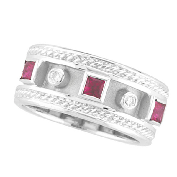 Antique Style Ruby & Diamond Ring, 14K White Gold