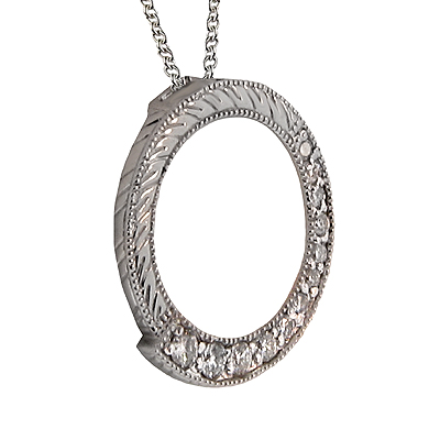 Diamond circle necklace, 6 different diamond sizes, ranging from 0.015 ct to 0.065 ct.