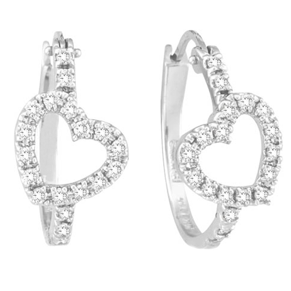 Diamond Heart Hoop Earrings White Gold
