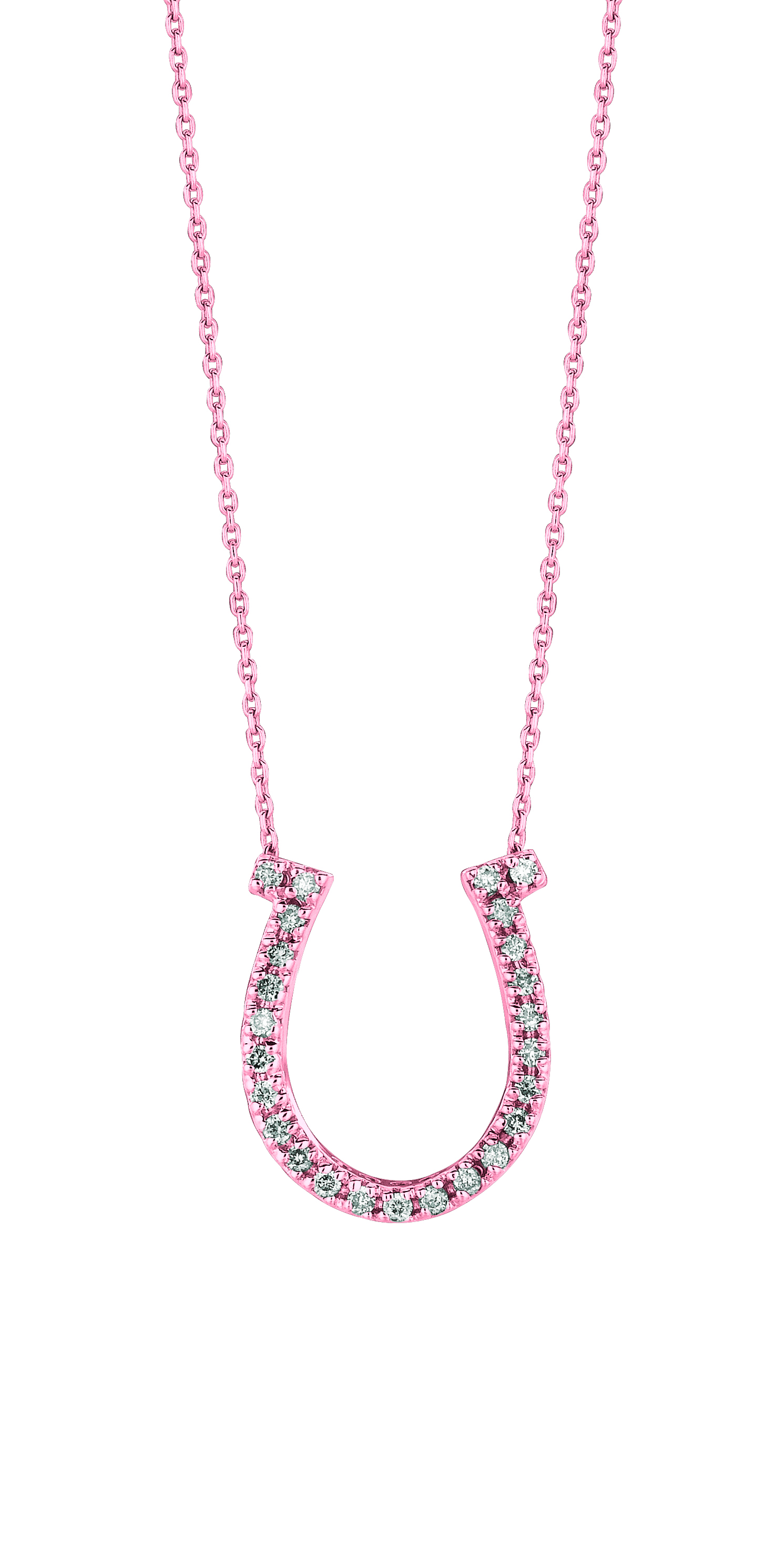 Diamond Horseshoe Pendant Necklace Pink Gold