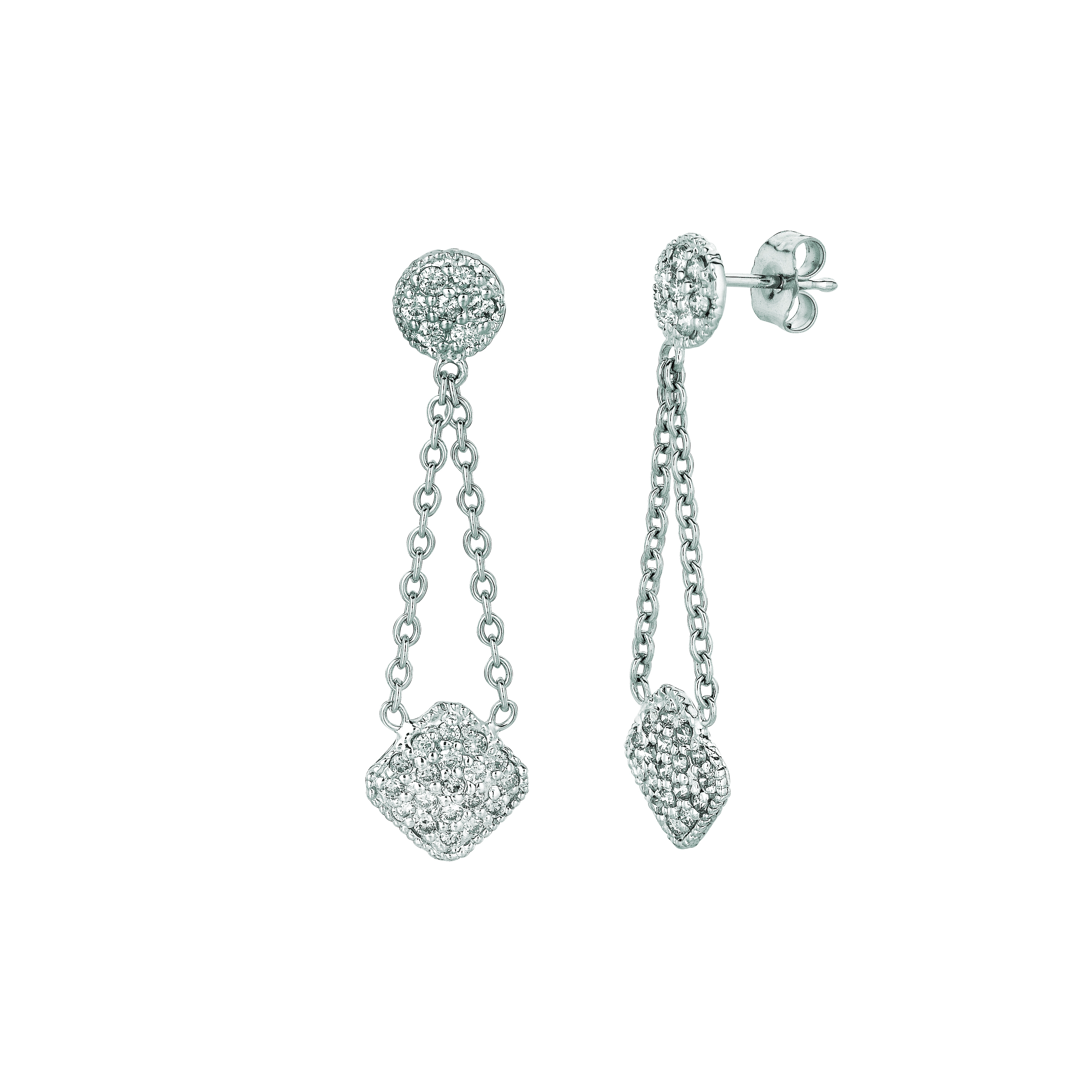 Diamond round & square drop earrings