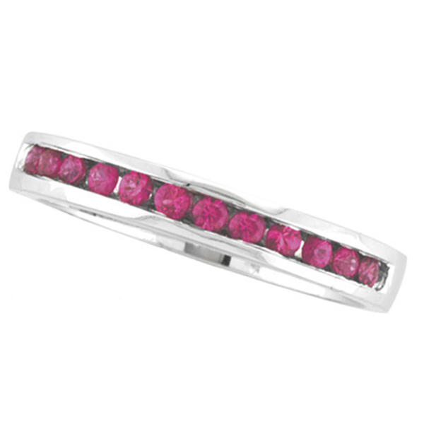 Pink Sapphire Channel Set Stack Ring, 14K White Gold