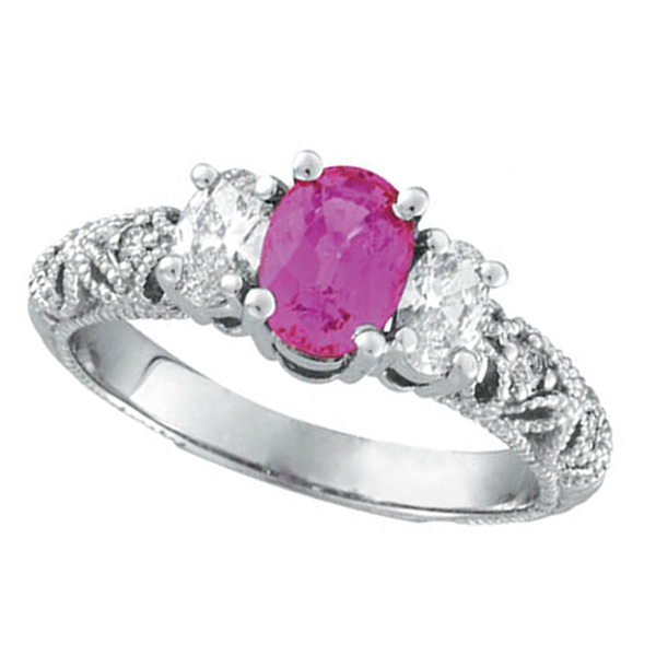 Pink Sapphire Three Stone Diamond Engagement Ring