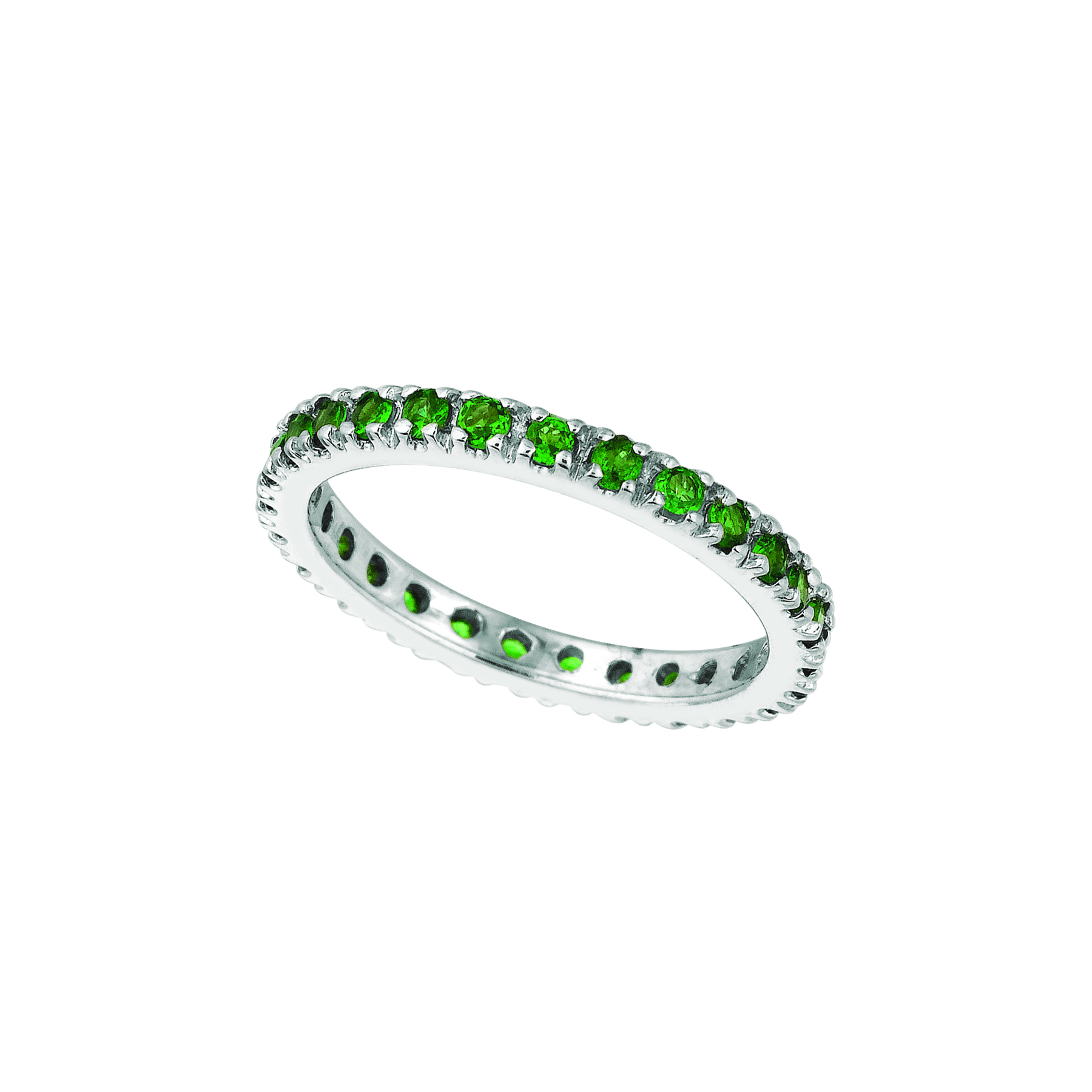 Tsavorite (Savorite) Eternity Guard Ring, 14K White Gold