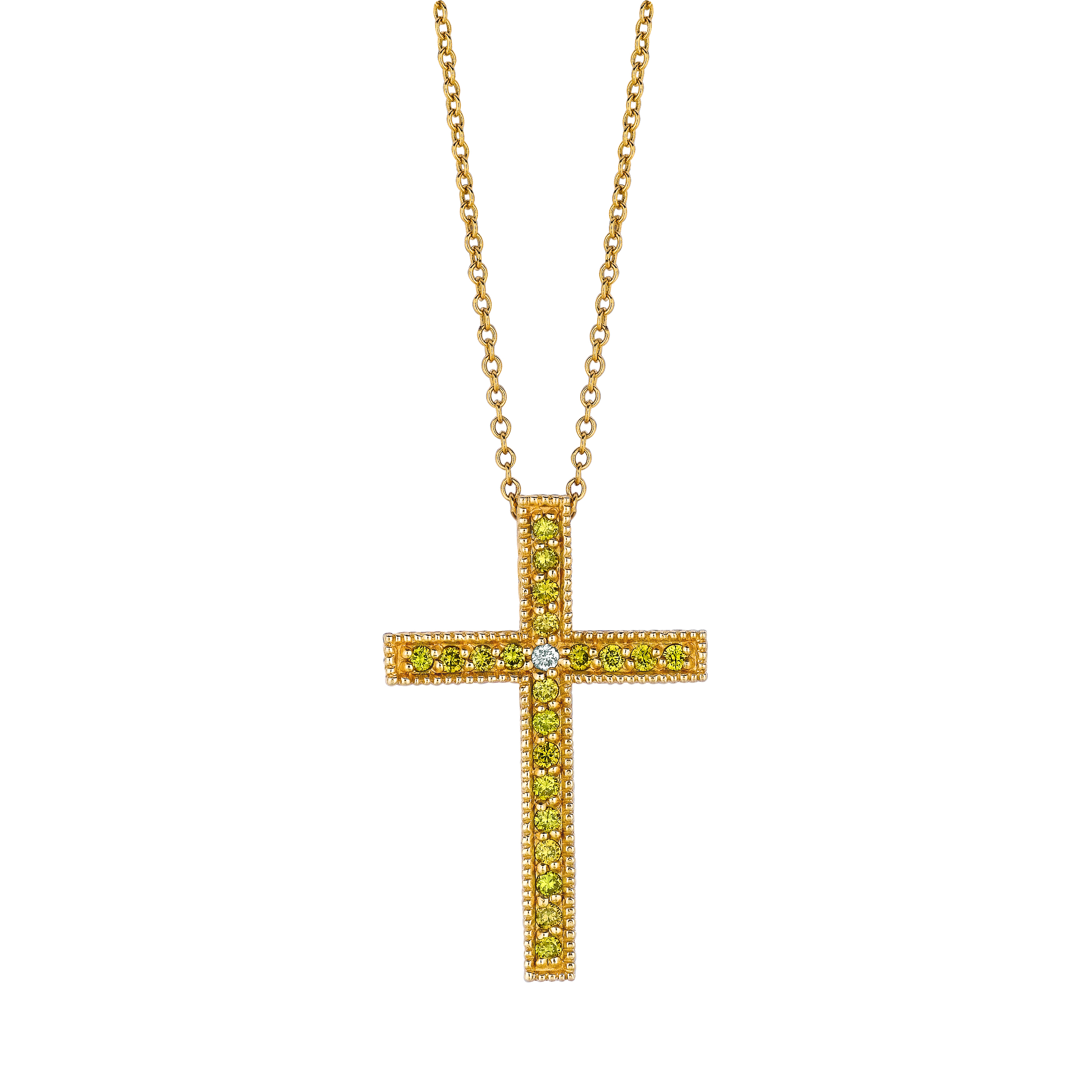 Yellow & white diamond cross necklace