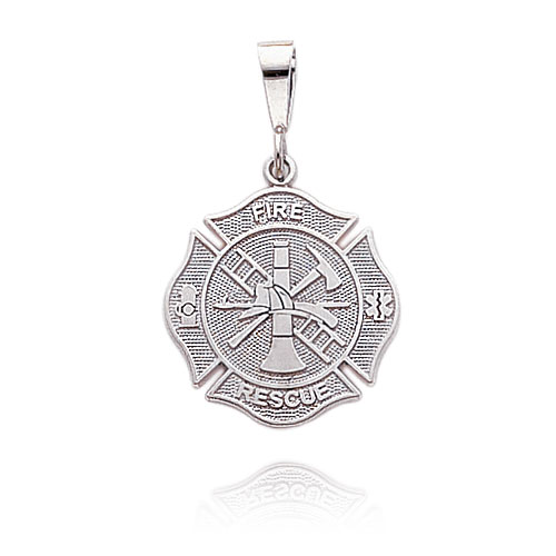 14K White Gold Polished Fire Rescue Pendant