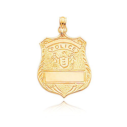 14K Yellow Gold Engraveable Police Badge Pendant