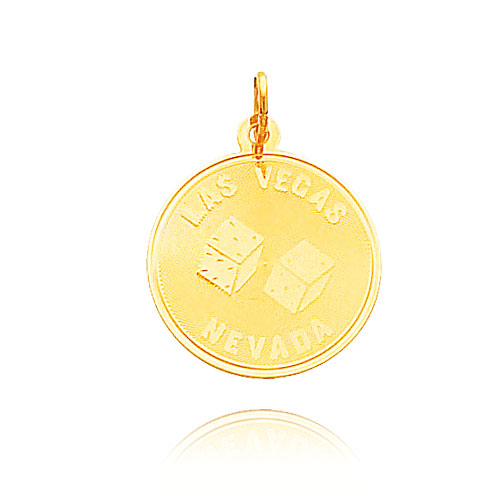 Show your love for fun and excitement with this unique charm. The satin finish adds texture, and the flat back is ready for engraving. 14K Yellow Gold is used to craft this solid disc that pays homage to sin city with the words "Las Vegas Nevada" and a pair of polished dice. The pendant hangs from a thin gold bail.