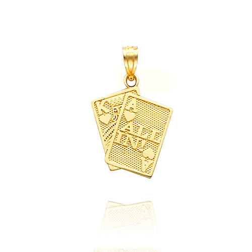 14K Yellow Gold Two Hearts "All In!" Cards Pendant