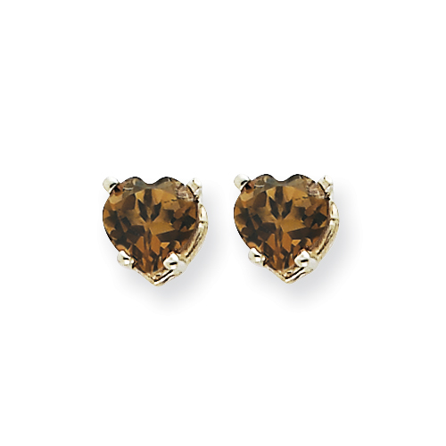 14kw 5mm Heart Smokey Quartz Earring