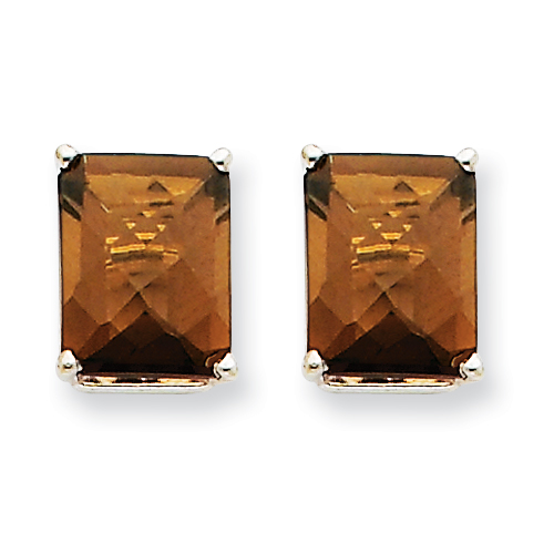 14kw 9x7mm Emerald Smokey Quartz Earring
