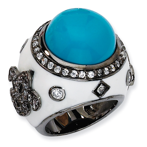 Black-plated Sterling Silver Enamel Simulated Turquoise & CZ RingWhy shop online with Ann Jewelry?