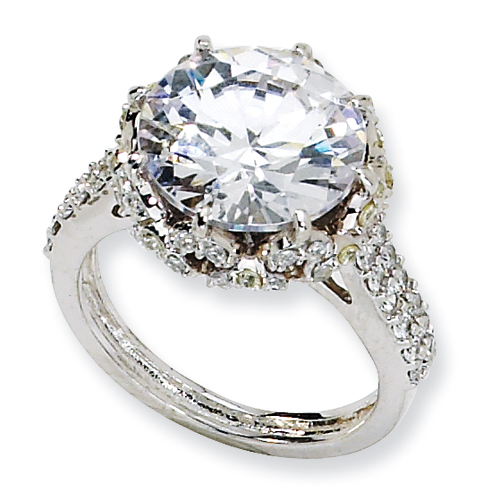 Sterling Silver Satin Simulated White Agate & CZ Ring