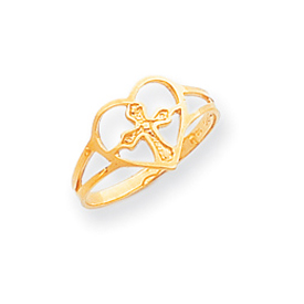 14K Gold Cross In Heart Ring
