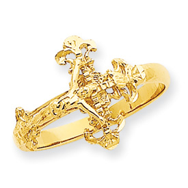 14K Gold Diamond Cut Crucifix Ring