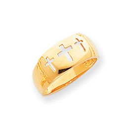 14K Gold Polished Cut-out 3 Cross Ring
