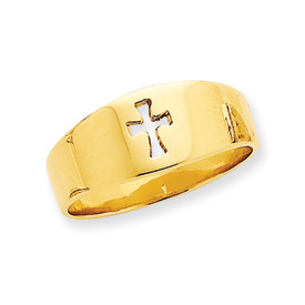 14K Gold Polished Cut-out Cross Ring