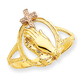 14K Two-tone Gold Diamond Cut Praying Hands Cross Ring