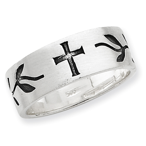 14K Gold Diamond-Cut Childs Heart & Cross Ring