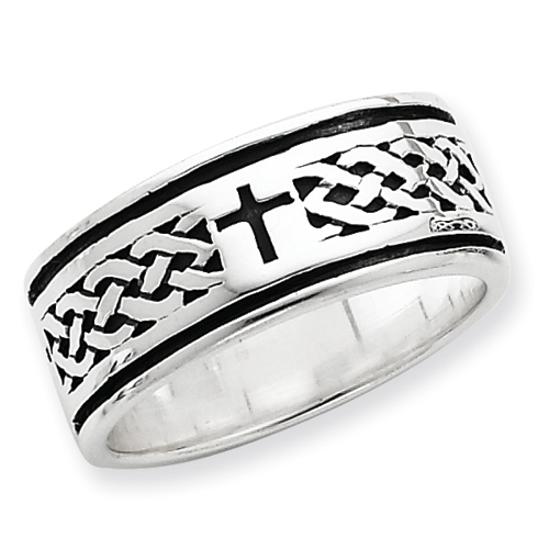 14k Two-tone Polished & Diamond-Cut Mens Crucifix Ring