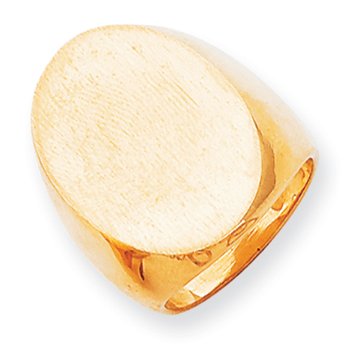 14K Yellow Gold Gents Solid Oval Signet Ring With Brush Finished Top