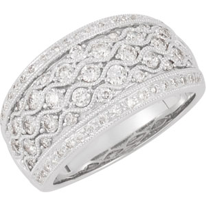Width: 1 CTTW DIAMOND RING Polish: Polished Weight: 7 GM | Stone Quantity | Stone Size | Stone | | 2 | 0.013 Ct -- 1.4 MM | I1 H+ Round Diamond | | 2 | 0.022 Ct -- 1.75 MM | I1 H+ Round Diamond | | 4 | 0.010 Ct -- 1.3 MM | I1 H+ Round Diamond | | 4 | 0.030 Ct -- 1.95 MM | I1 H+ Round Diamond | | 6 | 0.028 Ct -- 1.9 MM | I1 H+ Round Diamond | | 7 | 0.039 Ct -- 2.1 MM | I1 H+ Round Diamond | | 12 | 0.006 Ct -- 1.1 MM | I1 H+ Round Diamond | | 34 | 0.008 Ct -- 1.2 MM | I1 H+ Round Diamond |