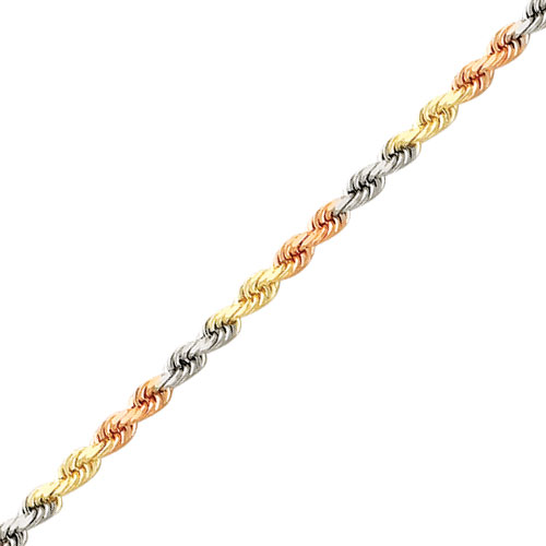 14K Tri-Color Gold 4mm Diamond Cut Rope Chain