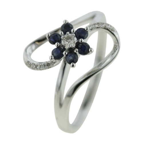 14K White Gold Blue Sapphire & Diamond Ring