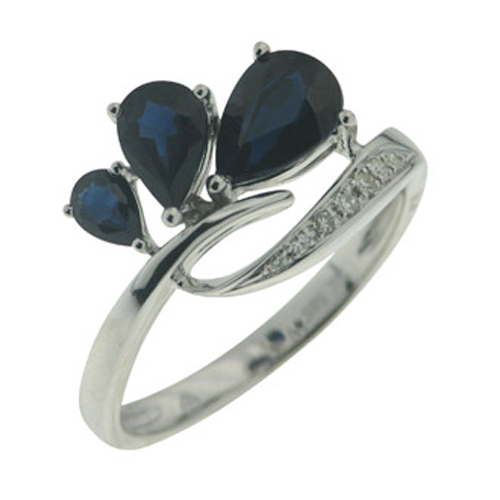 Picture of 14K White Gold Blue Sapphire & Diamond Ring