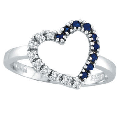 Picture of 14K White Gold .13ct Diamond & .13ct Sapphire Heart Ring