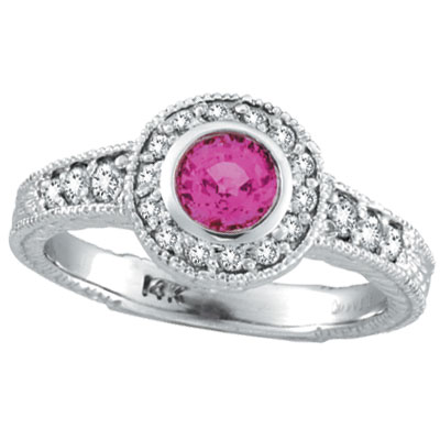 14K White Gold .65ct Pink Sapphire Bezel Ring with .35ct Diamond