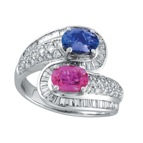 14K White Gold Pink Sapphire & Tanzanite & 1.0ct Diamond Ring SI1-SI2 G-HWhy shop online with Ann Jewelry?