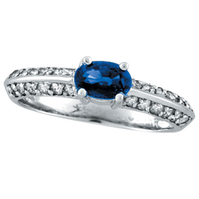 Picture of 14K White Gold Prong Setting .78ct Sapphire and .38ct Diamond Ring