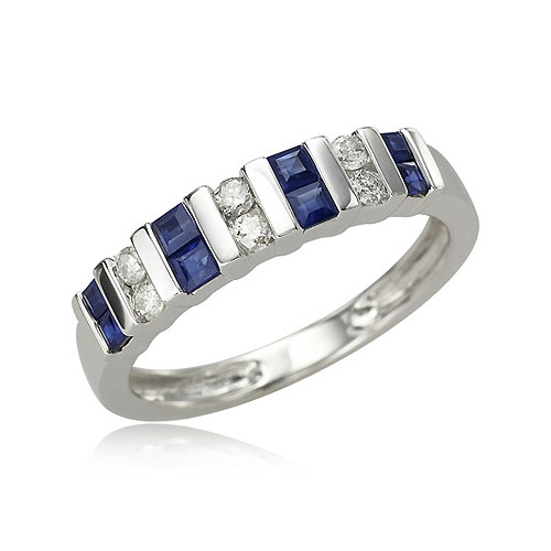 14K White Gold 3-Tier .86ct Sapphire & .60ct Diamond Eternity Band Ring