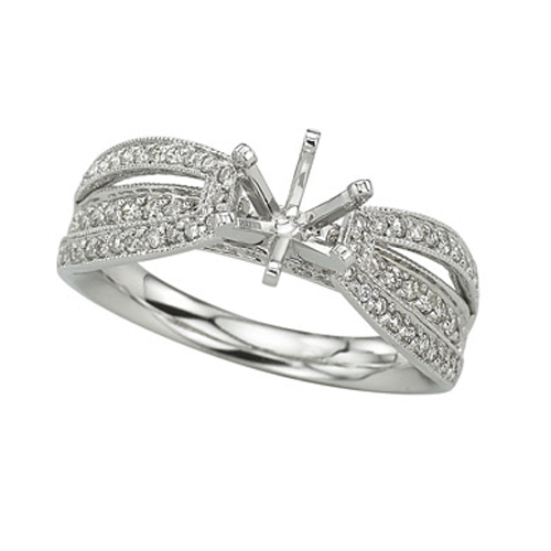 14K White Gold Round and Tap Baguette Diamond Bridal Ring