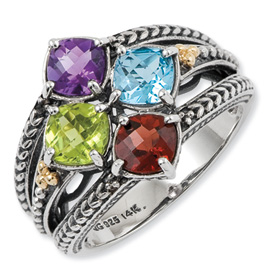 Sterling Silver & 14k Four-stone Mother's Ring Mounting ring