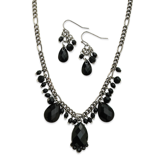 Black-Plated Jet Briolette Crystal Earrings & 16" Necklace Set
